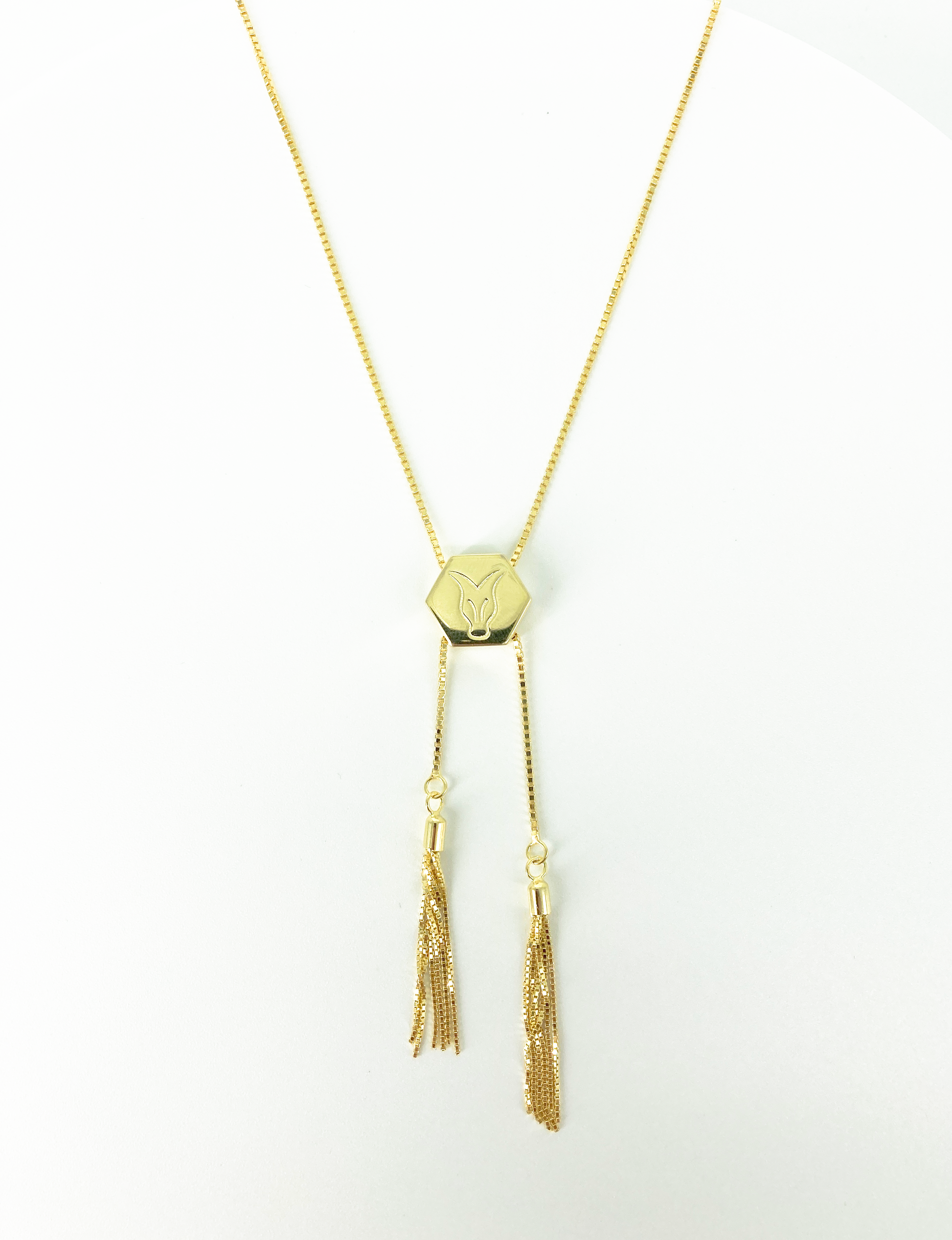 Our Gilded Tassel necklace is what dreams are made of. set in 14K gold Vermeil the necklace measures 30 inches from end to end and can be adjusted for length on the tassel to the specific position you want.